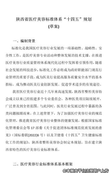 陜西省醫(yī)療美容標準體系“十四五”規(guī)劃(草案)