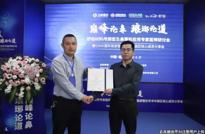 會(huì)后舒鉑廠家為王秀紅院長(zhǎng)授予「舒鉑SU-POR臨床使用醫(yī)生醫(yī)師」證書。強(qiáng)強(qiáng)聯(lián)合,表示將攜手并進(jìn),齊心協(xié)力為廣大求美者帶來超凡的鼻整形服務(wù)。