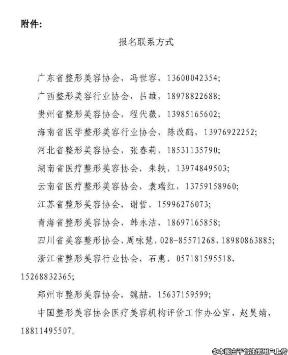 中國整形美容協(xié)會醫(yī)療美容機(jī)構(gòu)評價工作辦公室,趙昊婧,18811495507。