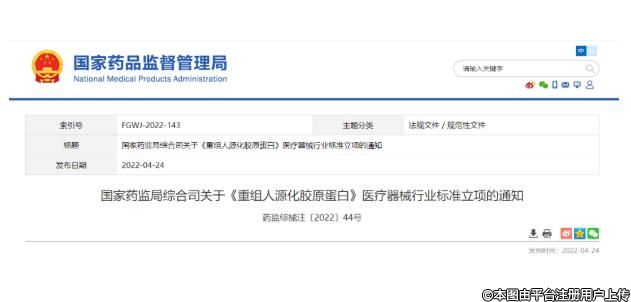 政策監(jiān)管 《重組人源化膠原蛋白》醫(yī)療器械行業(yè)標(biāo)準(zhǔn)將制訂