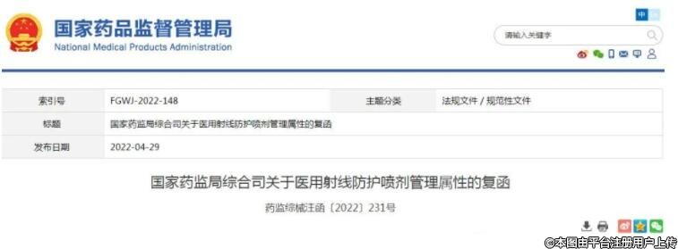 國家藥監(jiān)局:醫(yī)用射線防護(hù)噴劑按第二類醫(yī)療器械管理