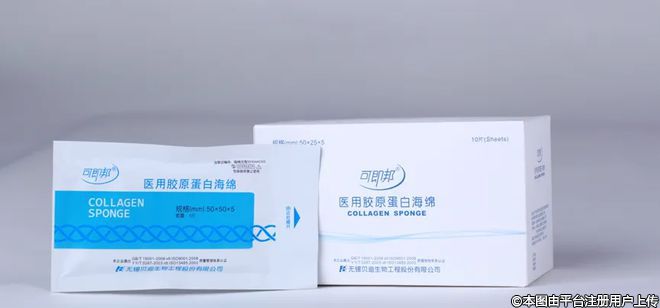 1.醫(yī)用膠原蛋白海綿:國械注準20143142302,產(chǎn)品從國產(chǎn)健康牛筋腱中萃取膠原蛋白,應用凍干工藝制得膠原蛋白海綿;具有止血、填充、修復等作用,適用于創(chuàng)傷、燒傷和手術創(chuàng)面的止血、修復及殘腔的充填。