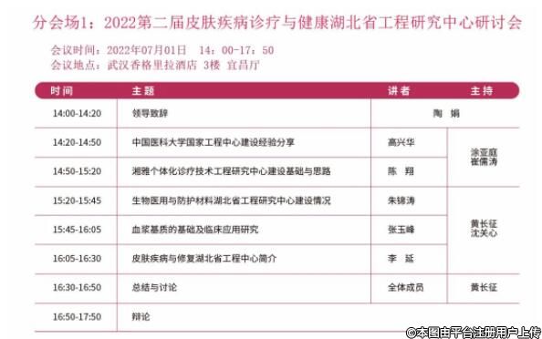 2022年07月01日14:00-17:30 2022第二屆皮膚疾病診療與健康湖北省工程研究中心研討會暨2022年第六屆武漢協(xié)和醫(yī)院皮膚科??坡?lián)盟會議