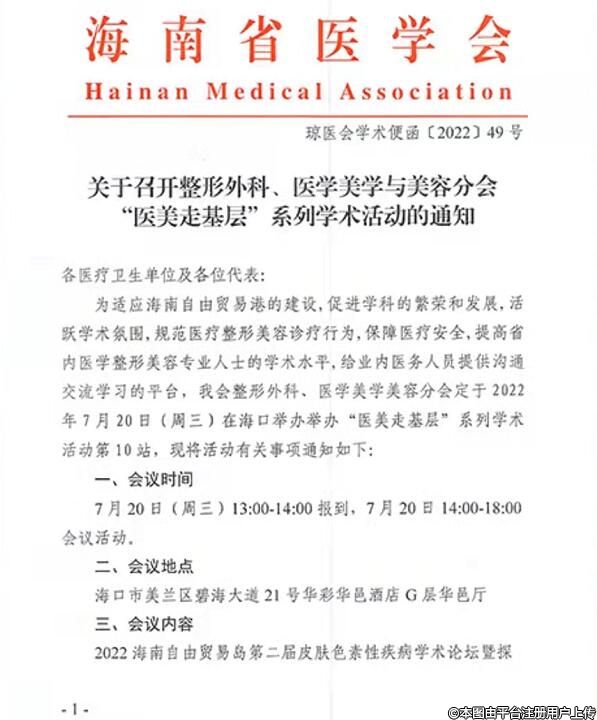 2022年7月20日14:00由海南省醫(yī)學會整形外科、醫(yī)學美學美容分會、海南紅瑞集團-紅妝尚醫(yī)學美容連鎖聯(lián)合主辦,海南省醫(yī)療健康旅游協(xié)會醫(yī)美旅游分會、海南科伊美生物科技有限公司協(xié)辦的2022海南自由貿易港第二屆皮膚色素性疾病學術論壇。將在??谌A彩華邑G層華邑廳盛大開啟。