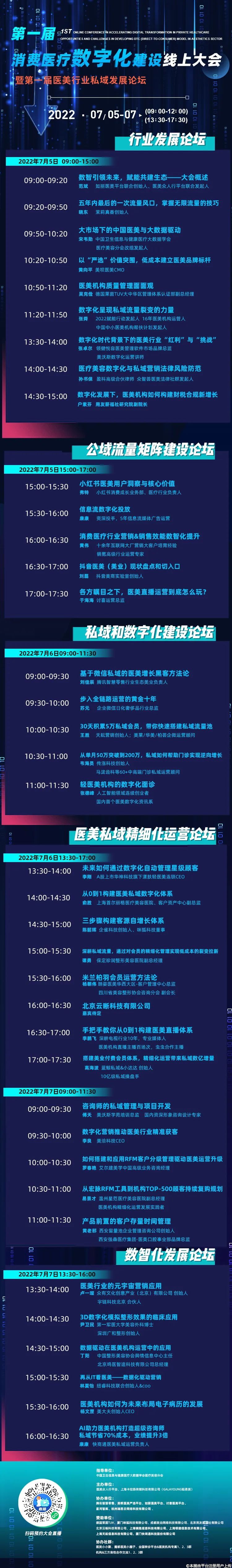 本次大會共設(shè)立“行業(yè)發(fā)展論壇”、“公域流量矩陣建設(shè)論壇”、“私域和數(shù)字化建設(shè)論壇”、“醫(yī)美私域精細(xì)化運營論壇”、“數(shù)智化發(fā)展論壇”五大分論壇,從行業(yè)發(fā)展維度為醫(yī)美企業(yè)發(fā)展指明方向,從公域流量建設(shè)維度為醫(yī)美企業(yè)獲客提供路徑,從私域和數(shù)字化維度為醫(yī)美企業(yè)戰(zhàn)略和管理升級提供思路,從私域運營維度為醫(yī)美企業(yè)良性增長提供實踐經(jīng)驗和案例分享,從數(shù)智化發(fā)展維度分享消費醫(yī)療數(shù)智化的前沿成果和探索。