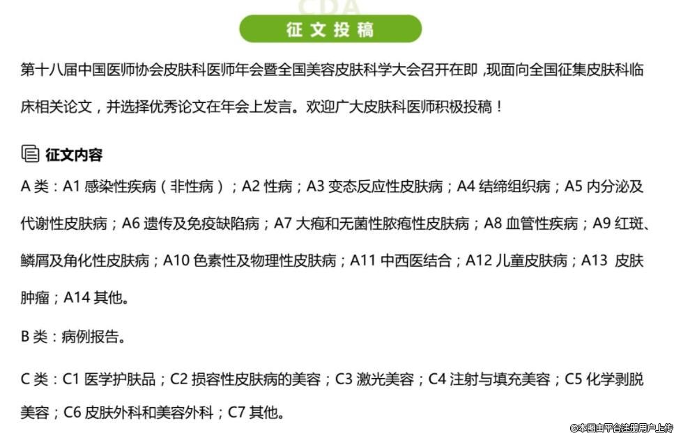 第十八屆中國醫(yī)師協(xié)會皮膚科醫(yī)師年會暨全國美容皮膚科學大會(CDA2022)期待您的參與。