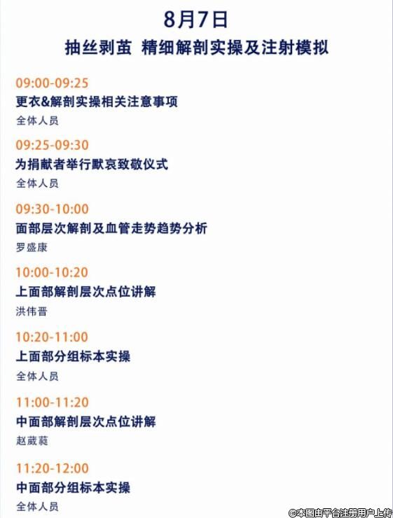 參與解剖實操班的您,可以直觀、立體、深入地了解解剖結構,并在解剖學專家的講解教學下,進行人體頭面部美容注射及層次解剖實操,近距離感受注射與解剖的緊密關系。同時,主會場將借助3D技術同步轉播臨床解剖高清實景。