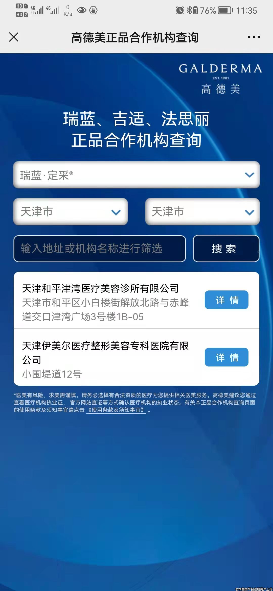 津沽瑞藍定采正品合作醫(yī)美機構2家