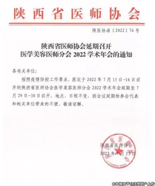 [延期通知]陜西省醫(yī)師協(xié)會(huì)醫(yī)學(xué)美容醫(yī)師分會(huì)2022學(xué)術(shù)年會(huì)