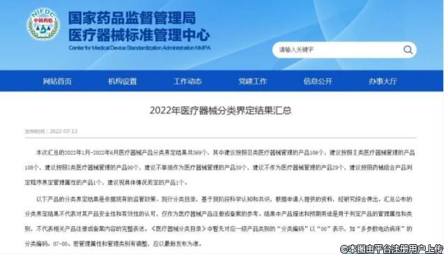 國家藥監(jiān)局發(fā)布《2022年醫(yī)療器械分類界定結果匯總》