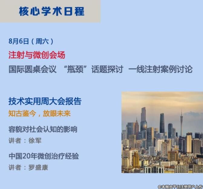 本次盛會將從臨床實際出發(fā),結(jié)合大體解剖、理論探討及病例討論,邀請國內(nèi)外知名專家,與您一起聚焦注射及皮膚美容熱點和難點,齊聚羊城,共話醫(yī)美。