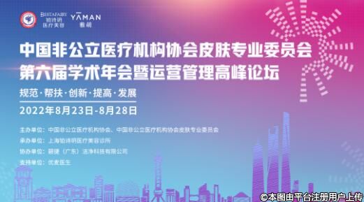 為共同促進我國皮膚醫(yī)學及醫(yī)療美容行業(yè)的健康有序發(fā)展,加強社會辦醫(yī)療機構(gòu)與公立醫(yī)療機構(gòu)的合作交流,提升醫(yī)療質(zhì)量和服務水平,經(jīng)研究,決定于2022年8月24-28日以線上形式舉辦“中國非公立醫(yī)療機構(gòu)協(xié)會皮膚專業(yè)委員會(以下簡稱”專委會“)第六屆學術(shù)年會暨運營管理高峰論壇”。現(xiàn)誠摯邀請您參加本次會議,有關事項通知如下: