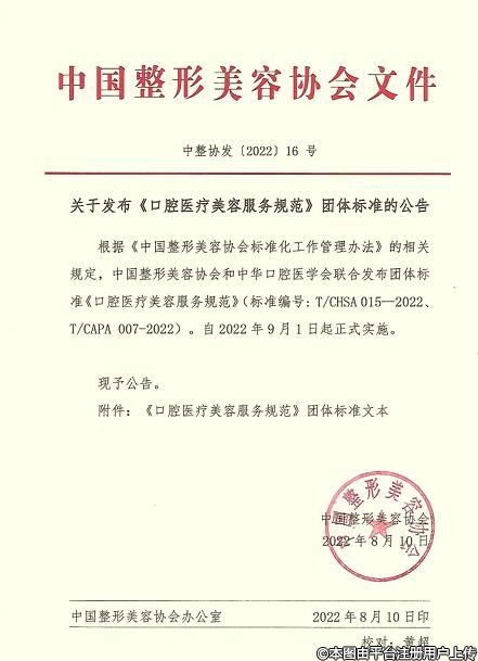 《口腔醫(yī)療美容服務(wù)規(guī)范》團(tuán)體標(biāo)準(zhǔn)自2022年9月1日起正式實(shí)施