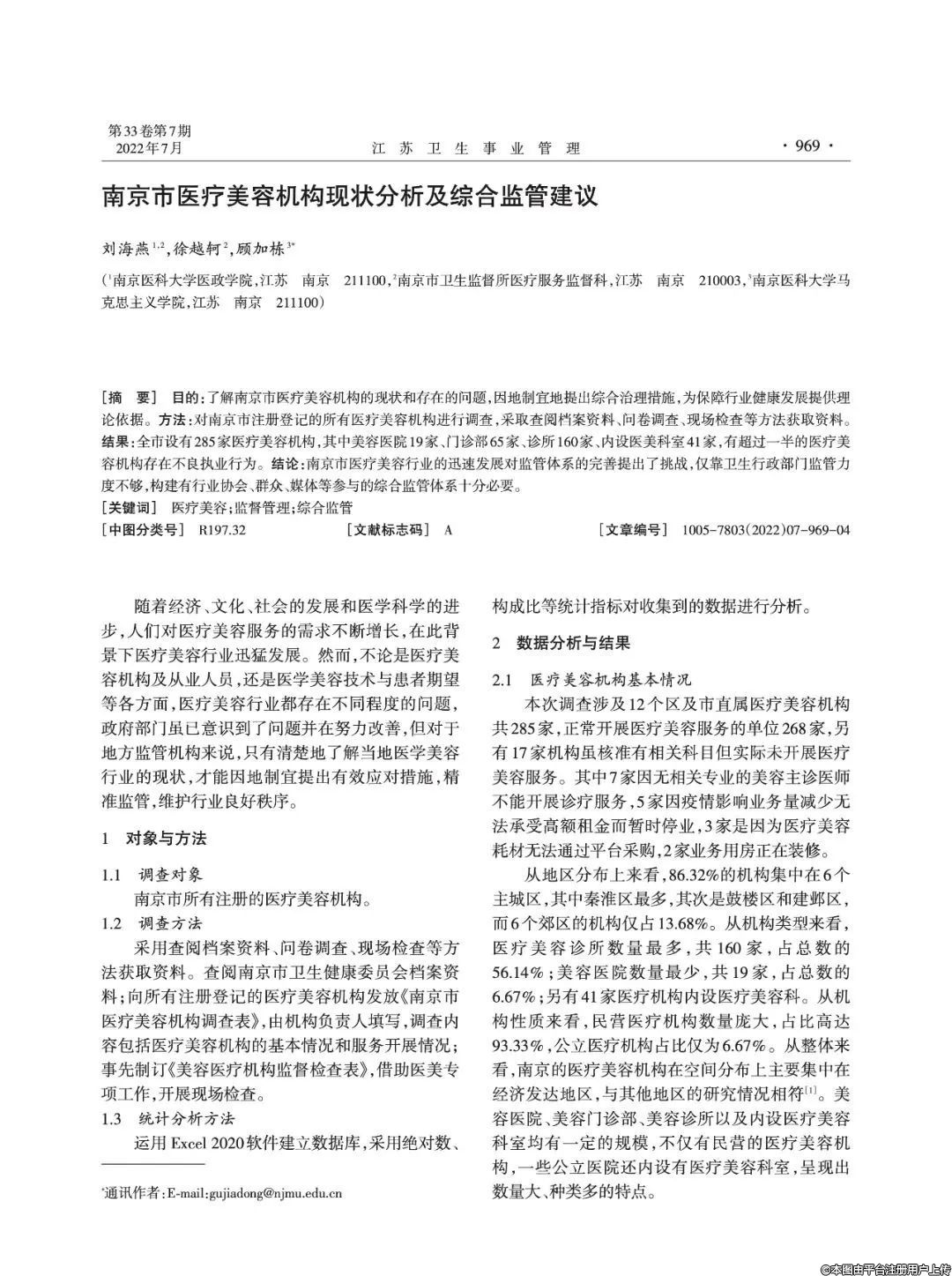 南京市醫(yī)療美容機(jī)構(gòu)現(xiàn)狀分析及綜合監(jiān)管建議
