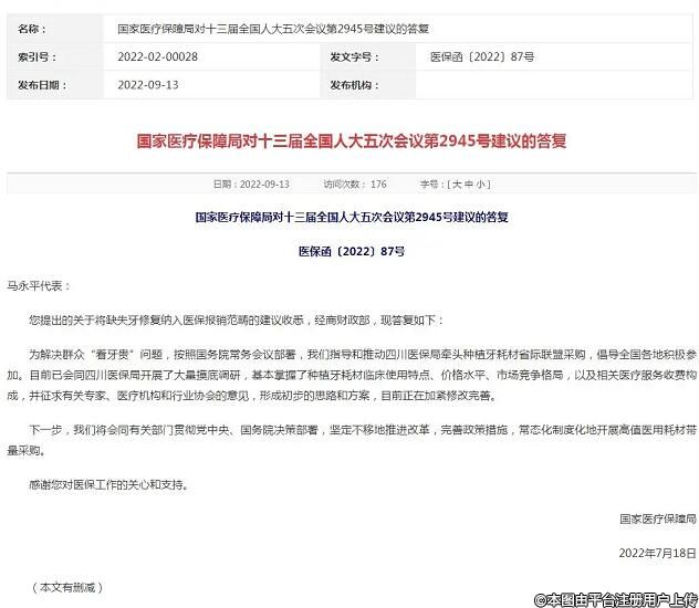 人大代建議“將種牙納入醫(yī)保”國(guó)家醫(yī)保局答復(fù)