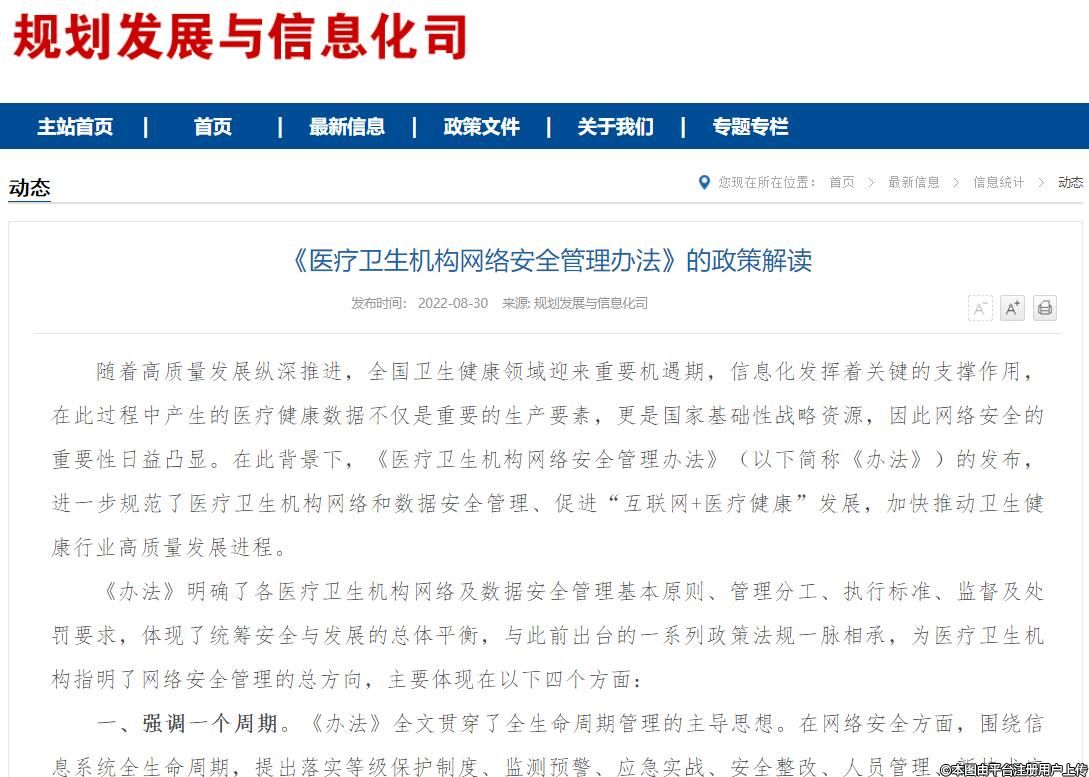 此次,幾個(gè)部門發(fā)布的《辦法》目的是進(jìn)一步規(guī)范了醫(yī)療衛(wèi)生機(jī)構(gòu)網(wǎng)絡(luò)和數(shù)據(jù)安全管理、促進(jìn)“互聯(lián)網(wǎng)+醫(yī)療健康”發(fā)展,加快推動(dòng)衛(wèi)生健康行業(yè)高質(zhì)量發(fā)展進(jìn)程。
