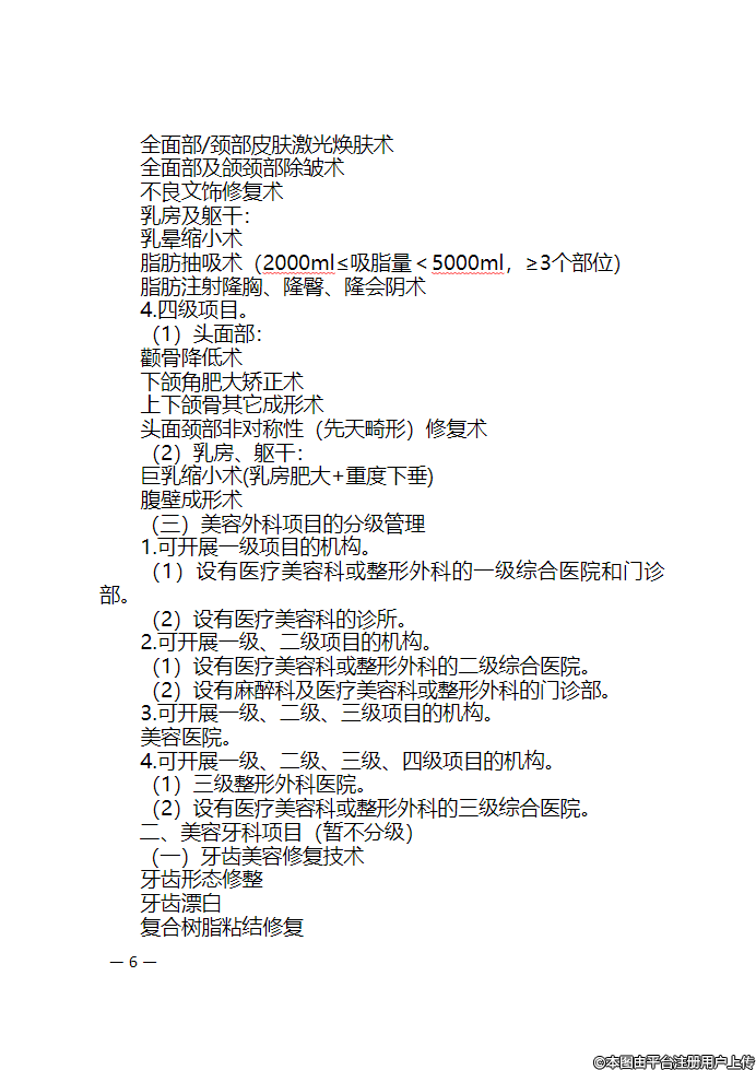 為進(jìn)一步規(guī)范我省醫(yī)療美容項(xiàng)目分級(jí),加強(qiáng)美容醫(yī)療機(jī)構(gòu)管理,提升醫(yī)療美容服務(wù)水平,保障醫(yī)療美容安全,根據(jù)《衛(wèi)生部辦公廳關(guān)于印發(fā)醫(yī)療美容項(xiàng)目分級(jí)管理目錄的通知》(衛(wèi)辦醫(yī)政發(fā)(2009] 220號(hào)) 有關(guān)規(guī)定,我委結(jié)合工作實(shí)際,針對(duì)美容外科與美容皮膚科部分項(xiàng)目交叉的情況,組織專家調(diào)整制定了《湖南省醫(yī)療美容項(xiàng)目分級(jí)管理目錄》(見時(shí)件) ,現(xiàn)印發(fā)給你們,自本通知下發(fā)之日起執(zhí)行。其中,美容外科項(xiàng)目實(shí)行分級(jí)管理,美容牙科美容皮膚科和美容中醫(yī)科項(xiàng)目暫不實(shí)行分級(jí)管理。申請(qǐng)美容外科主診醫(yī)師資格認(rèn)定的執(zhí)業(yè)醫(yī)師,所申請(qǐng)的項(xiàng)目不得超出所注冊(cè)醫(yī)療機(jī)構(gòu)相對(duì)應(yīng)的級(jí)別項(xiàng)目范國。