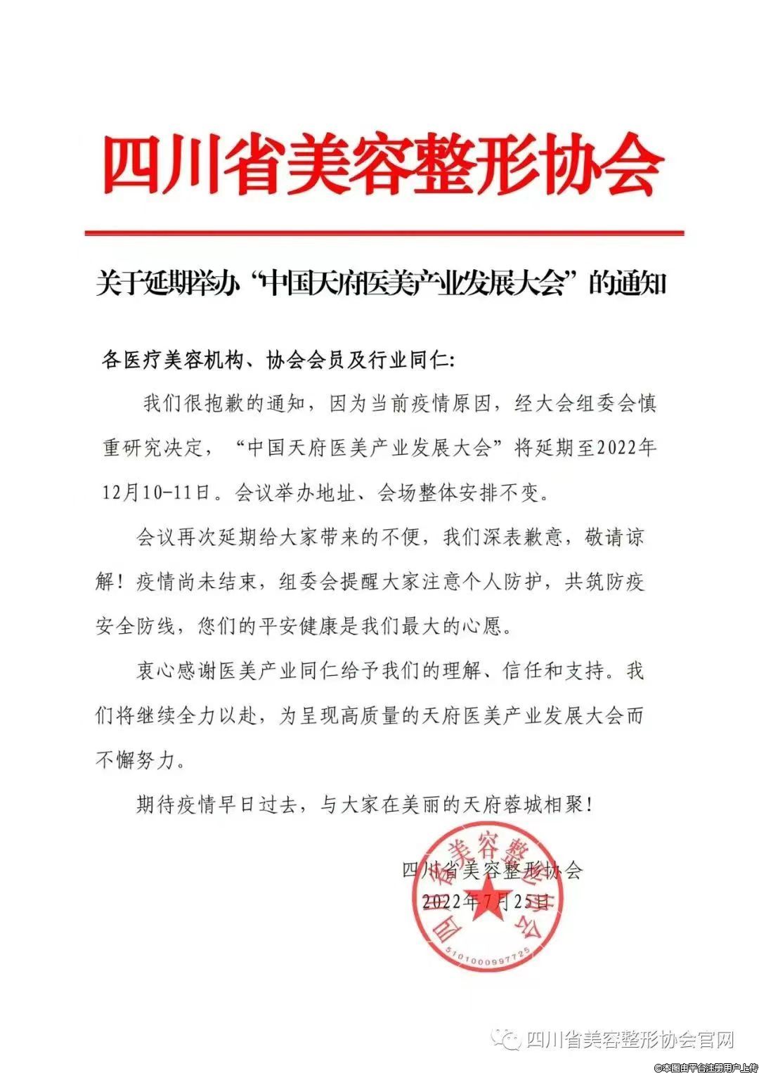 延期通知 2022中國天府醫(yī)美產(chǎn)業(yè)發(fā)展大會(huì)