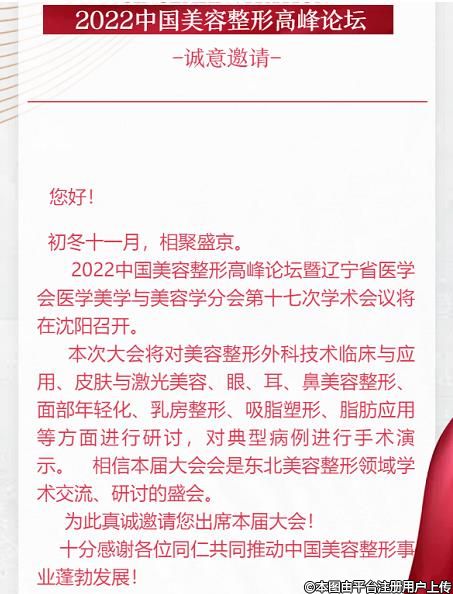 2022中國美容整開高峰論壇暨遼寧省醫(yī)學(xué)會(huì)醫(yī)學(xué)美學(xué)與美容學(xué)分會(huì)第十七次學(xué)術(shù)會(huì)議邀請函