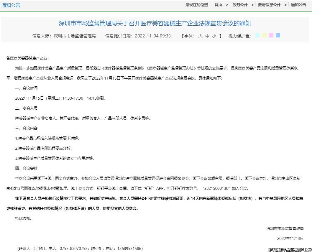 深圳市市場監(jiān)督管理局關于召開醫(yī)療美容器械生產(chǎn)企業(yè)法規(guī)宣貫會議的通知