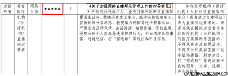 主要強調(diào)醫(yī)美的雙重合規(guī)性,執(zhí)業(yè)合規(guī)及直播合規(guī),對平臺直播運營者提出合規(guī)要求。