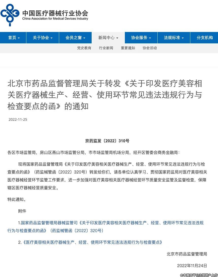 國藥監(jiān)局印發(fā)《醫(yī)療美容相關(guān)醫(yī)療器械生產(chǎn)、經(jīng)營、使用環(huán)節(jié)常見違法違規(guī)行為與檢查要點》