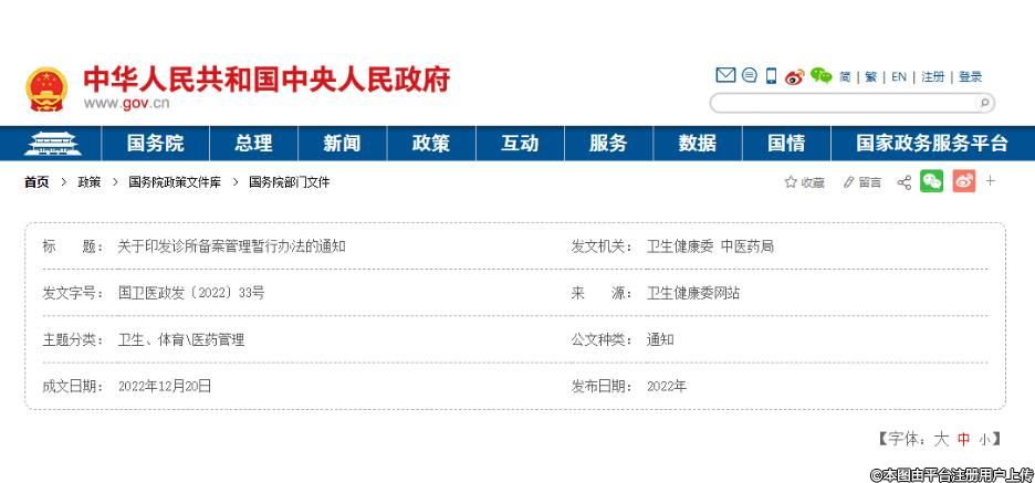 國(guó)家衛(wèi)生健康委、國(guó)家中醫(yī)藥局印發(fā)《診所備案管理暫行辦法》