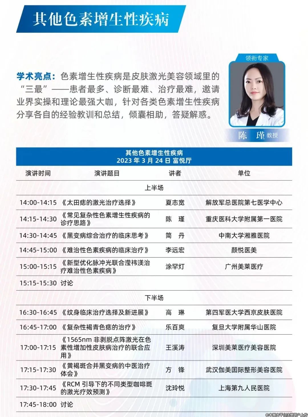 11年沉淀積累,續(xù)寫新輝煌!第十一屆全國激光美容與面部年輕化學(xué)術(shù)大會將繼續(xù)邀請近百位在激光美容和面部年輕化領(lǐng)域的權(quán)威學(xué)者和專家,就光電及光電聯(lián)合微整技術(shù)在面部年輕化及損容性皮膚病治療應(yīng)用的13個專題論壇,精選超過百個最熱學(xué)術(shù)議題,已經(jīng)吸引眾多醫(yī)美醫(yī)生和行業(yè)優(yōu)質(zhì)企業(yè)報名參會,本次會議將從會議規(guī)模、學(xué)術(shù)領(lǐng)域、行業(yè)展示等方面再上一個新臺階,必將續(xù)寫年度學(xué)術(shù)盛會的新篇章!