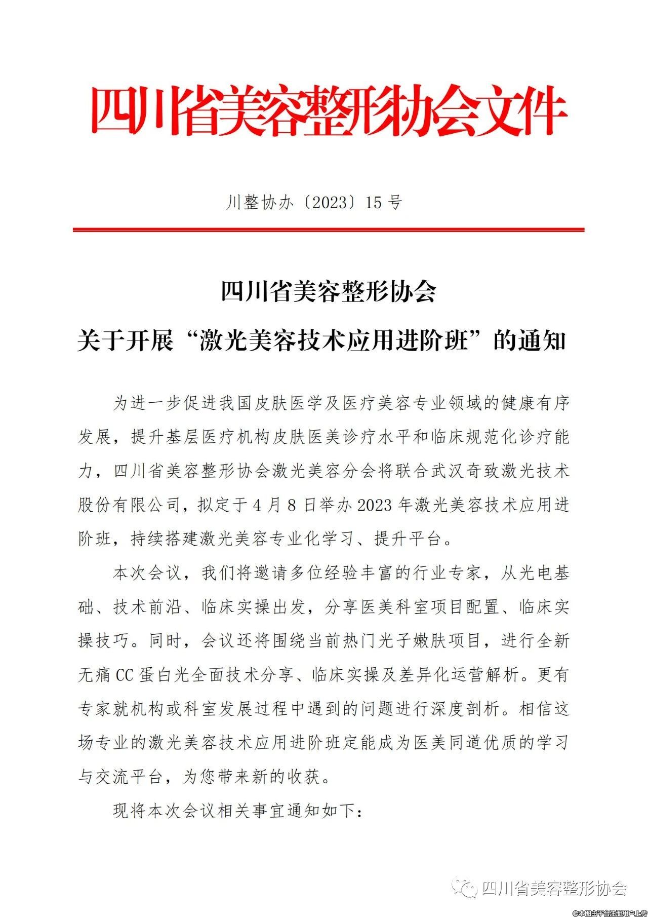 四川省美容整形協(xié)會激光美容分會關(guān)于開展“激光美容技術(shù)應(yīng)用進階班”的通知