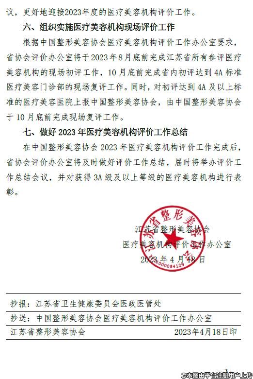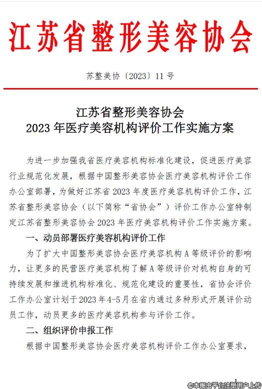 江蘇省整形美容協(xié)會2023年醫(yī)療美容機(jī)構(gòu)評價(jià)工作實(shí)施方案