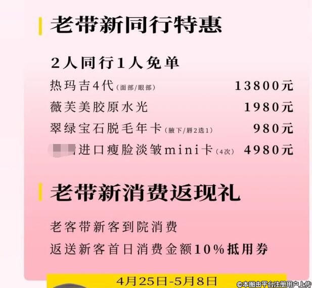 還有二人同行,一人免單活動,老會員帶新顧客到院還能享受,新顧客首日消費金額的10%抵扣券,當(dāng)然是肥水不留外人田,喊上小姐妹們,一起來美吧~