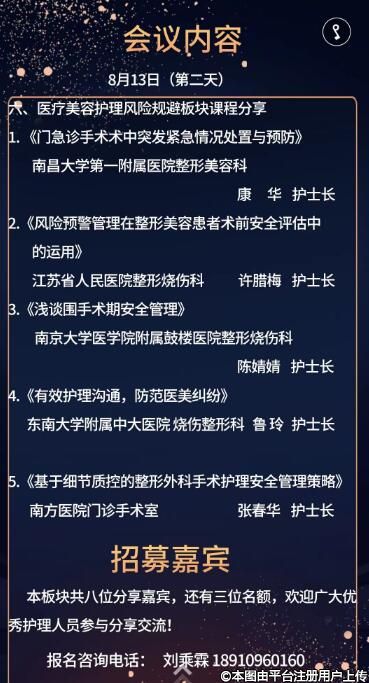8月12-13日將在江蘇省中醫(yī)院優(yōu)先啟動(dòng)《中國(guó)醫(yī)療美容風(fēng)險(xiǎn)防控與護(hù)理標(biāo)準(zhǔn)》研討會(huì)
