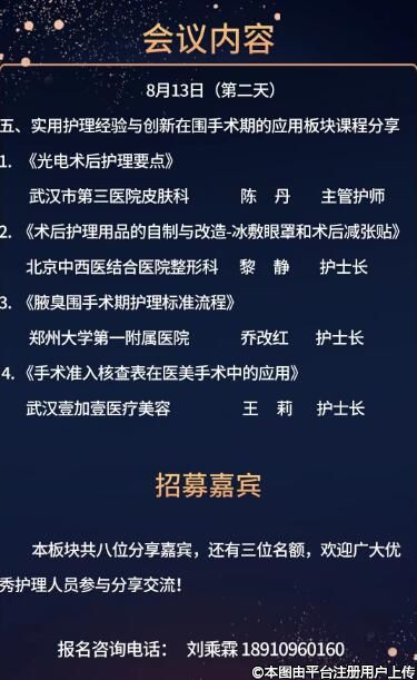 2023年8月12-13日,將在江蘇省中醫(yī)院優(yōu)先啟動(dòng)《中國(guó)醫(yī)療美容風(fēng)險(xiǎn)防控與護(hù)理標(biāo)準(zhǔn)》研討會(huì),本次會(huì)議除開(kāi)展專家經(jīng)驗(yàn)分享外,還會(huì)在晚間召開(kāi)小組討論會(huì),專家與參會(huì)成員將共同梳理基層實(shí)際需求,制定測(cè)評(píng)標(biāo)準(zhǔn)等工作,這將是護(hù)理崗位人員系統(tǒng)成長(zhǎng)的絕佳機(jī)會(huì),更是聯(lián)合廣大醫(yī)美機(jī)構(gòu)共同推動(dòng)行業(yè)健康發(fā)展的盛會(huì)。