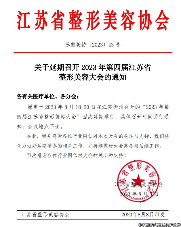 關(guān)于延期召開2023年第四屆江蘇省整形美容大會(huì)的通知