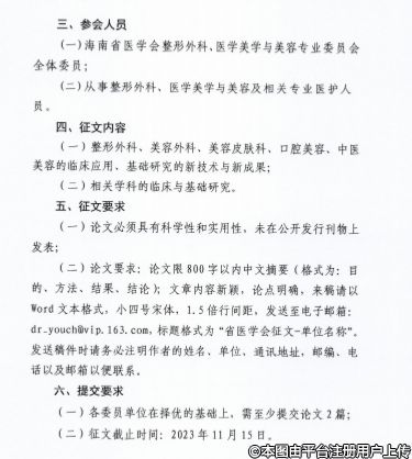 海南省醫(yī)學(xué)會關(guān)于召開整形外科、醫(yī)學(xué)美學(xué)與美容分會2023學(xué)術(shù)年會的通知