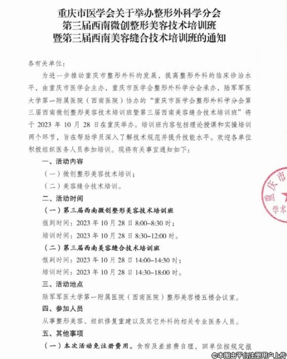 [學術(shù)交流]重慶市第三屆西南微創(chuàng)整形美容技術(shù)培訓班通知