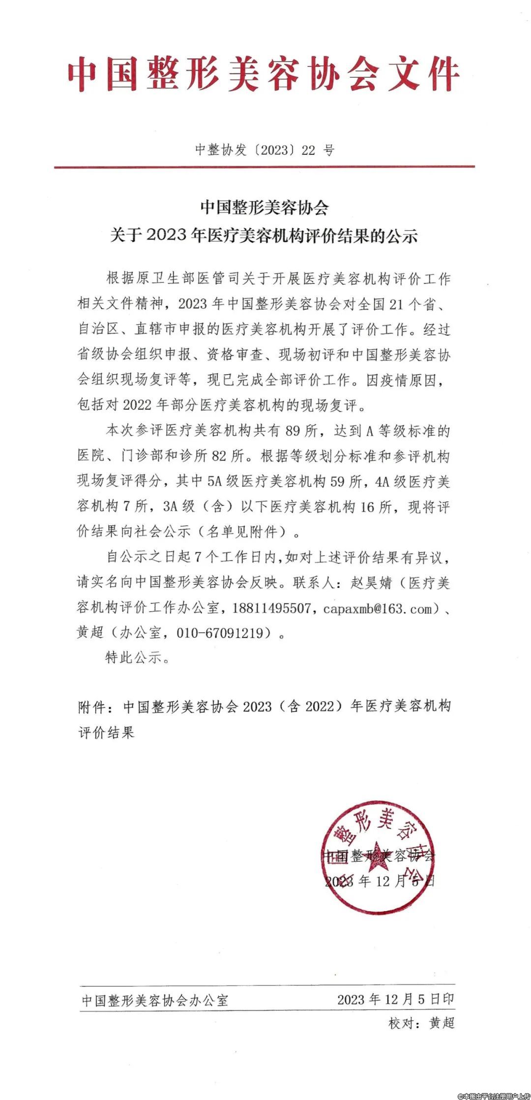 2023年12月5日,中國整形美容協(xié)會正式公示了2023年醫(yī)療美容機構(gòu)評價結(jié)果,蘇州吳中維多利亞美容醫(yī)院再次獲評5A級醫(yī)療美容醫(yī)院!