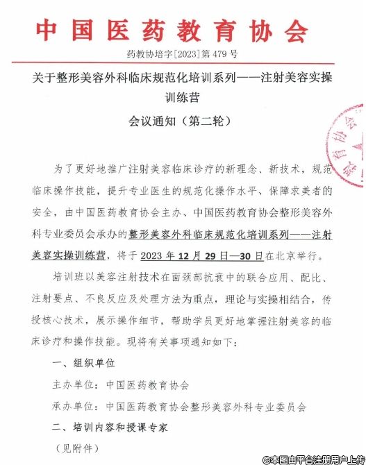 注射美容臨床規(guī)范化實(shí)操訓(xùn)練營(yíng)將于月底在北京舉行