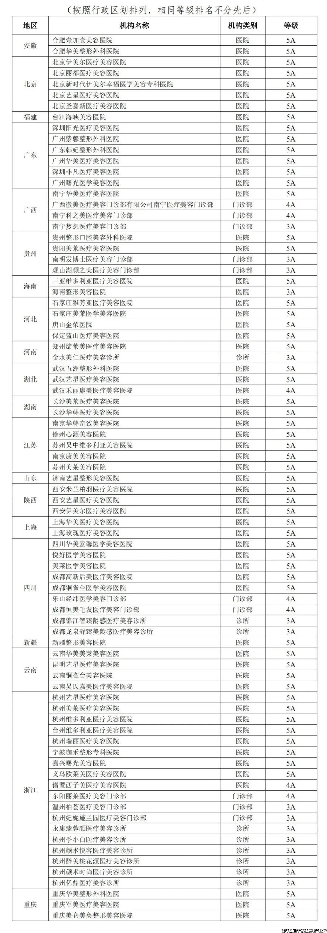 中國整形美容協(xié)會 2023 (含 2022) 年醫(yī)療美容機(jī)構(gòu)評價結(jié)果