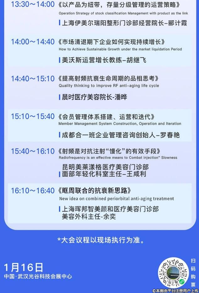 會議期間視博傾情參與,聯(lián)合大會冠名承辦「中國醫(yī)美創(chuàng)新運維大會暨醫(yī)美眾人行之“醫(yī)美機構(gòu)增長陪跑計劃”」特色論壇,邀請十余位行業(yè)大咖在1月16日全天展開精彩課題分享,聚焦企業(yè)戰(zhàn)略定位、產(chǎn)品運營體系、機構(gòu)核心競爭力等方面的打造,探索機構(gòu)持續(xù)增長全新視角,專業(yè)碰撞,干貨輸出,視博與您相約武漢,歡迎您的到來