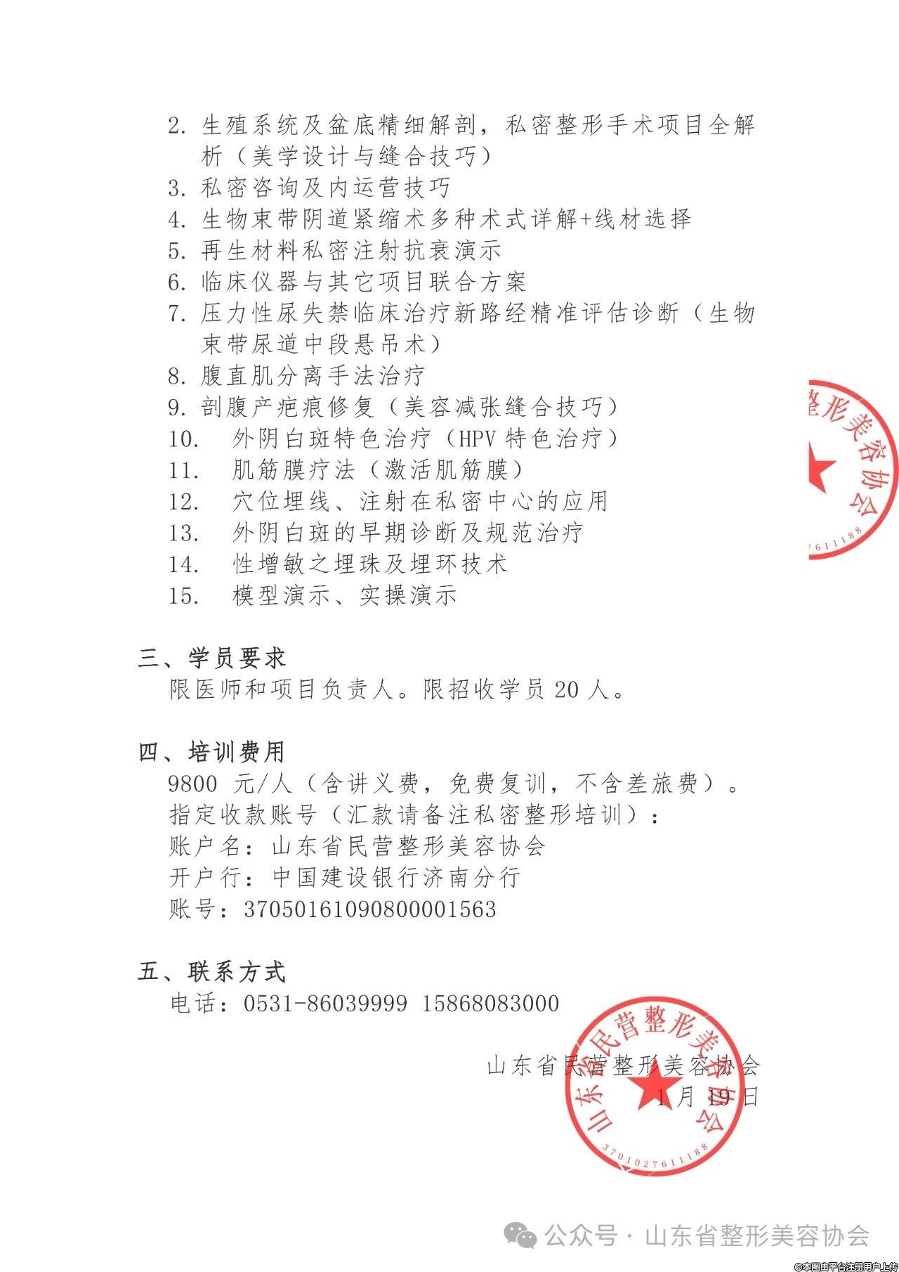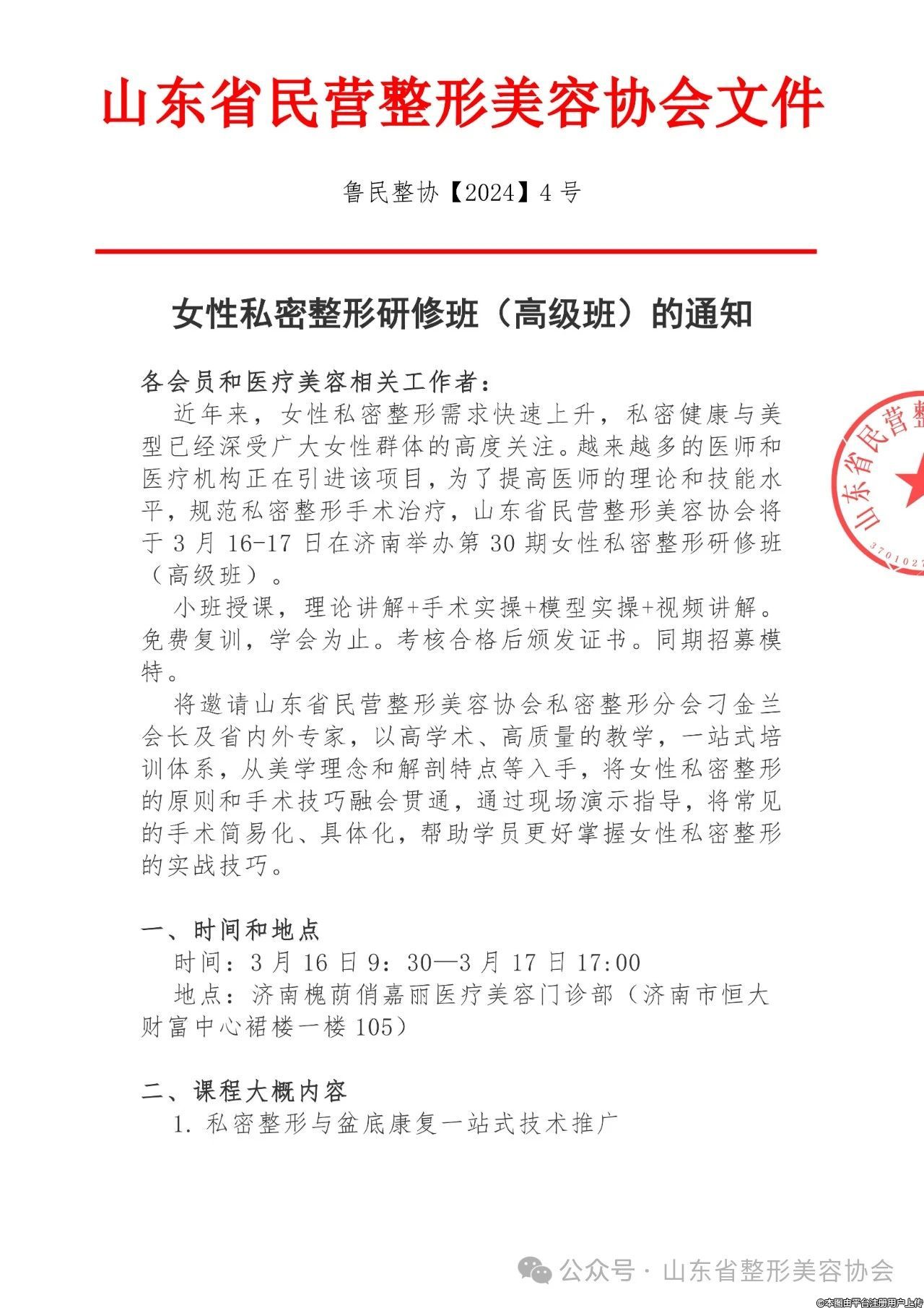 3月16-17日第30期女性私密整形研修班(高級班)的通知