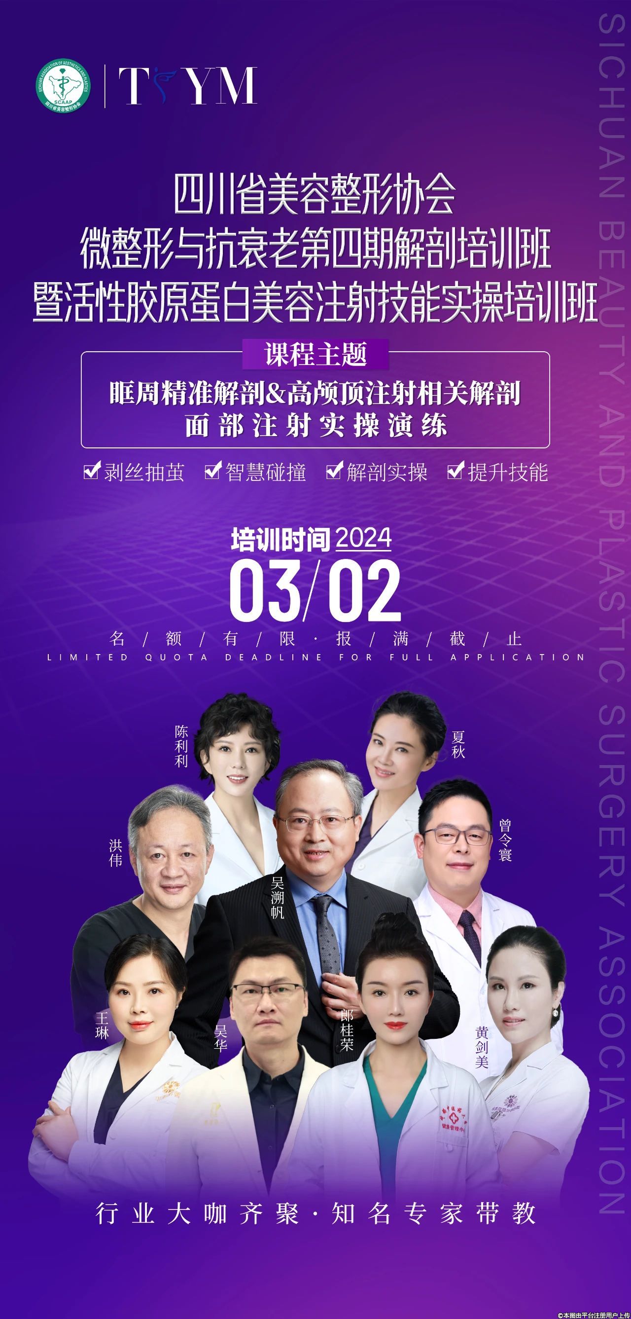 2024年3月2日,四川省美容整形協(xié)會微整形與抗衰老第四期解剖培訓(xùn)班將如期開班。對于從事微整形與抗衰老的臨床醫(yī)生來說,應(yīng)用解剖技術(shù)、血管神經(jīng)分布以及肌肉走向等都需要有精準(zhǔn)的了解與掌握。只有這樣才能更好地開展微整形與抗衰老技術(shù)操作,提高醫(yī)療美容效果,保障醫(yī)療安全。