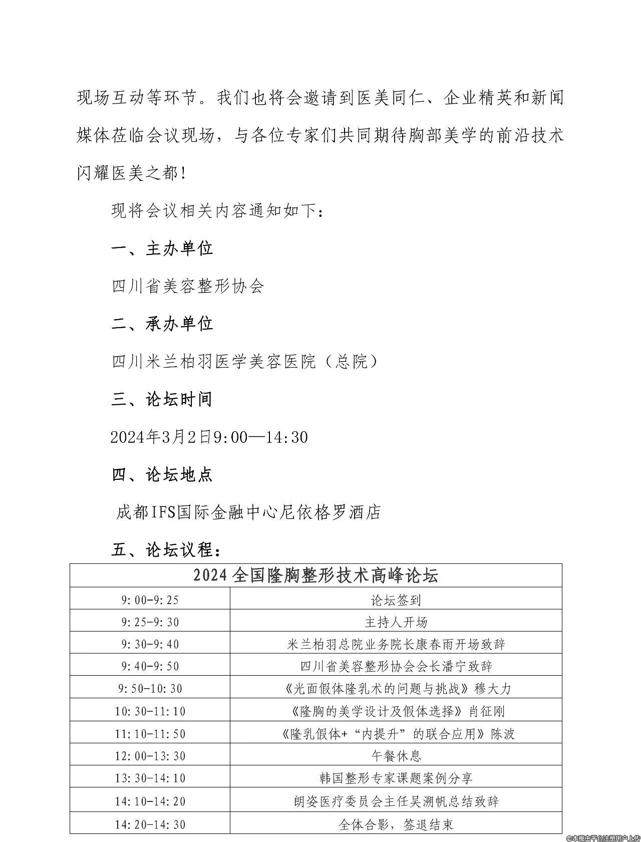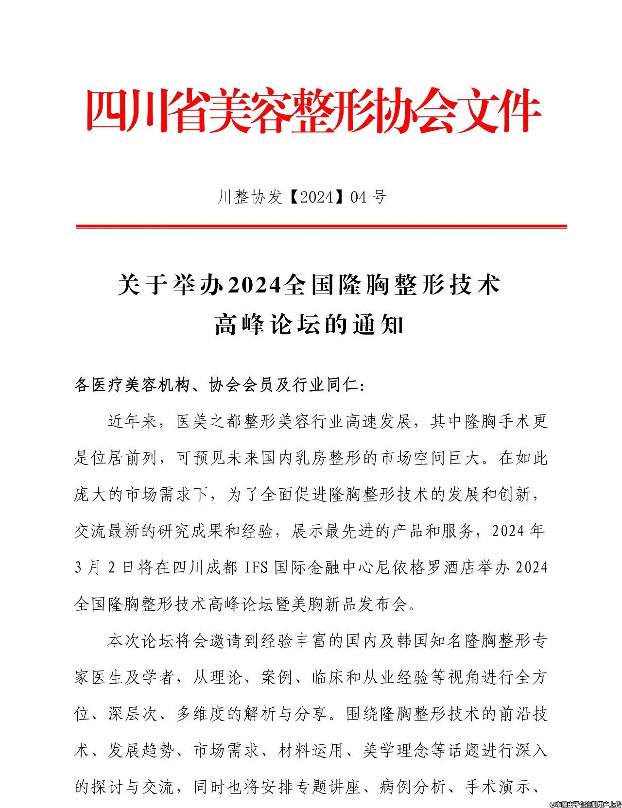 會議通知 2024全國隆胸整形技術高峰論壇暨美胸新品發(fā)布會