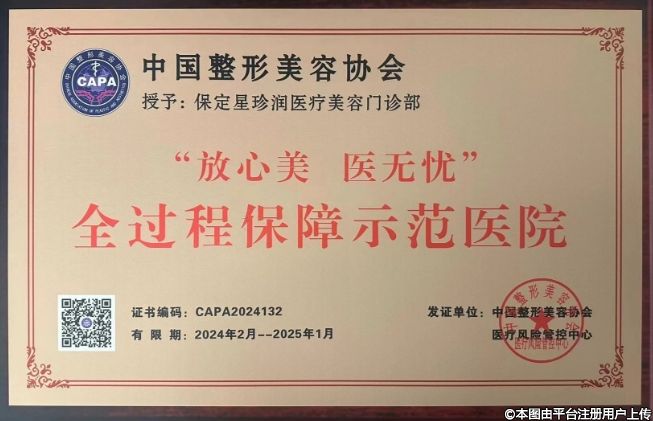 2024保定珍潤再次榮獲“放心美 醫(yī)無憂”全過程保障示范醫(yī)院