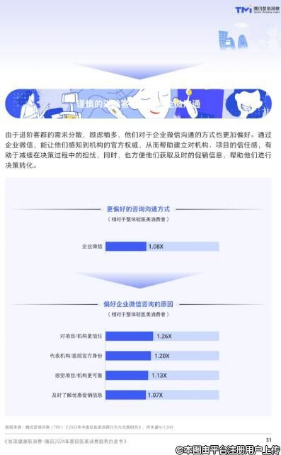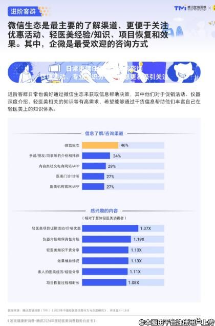 安全合規(guī)指求美者要驗(yàn)證機(jī)構(gòu)的背景、人員的資質(zhì)、產(chǎn)品的真?zhèn)蔚?。審美在線指求美者從于篇一律朝著自然個(gè)性轉(zhuǎn)變。輕齡化指求美者里年輕人比例增大,在全球也首屈一指。生活化指求美者會(huì)把更多舒適且有效的治療當(dāng)作更美好的生活方式。更悅己指求美者的需求驅(qū)動(dòng)力開(kāi)始來(lái)源于自我認(rèn)可和自我追求。更開(kāi)放是求美者不再忌諱醫(yī)美,愿意分享醫(yī)美。物有所值指求美者不是只看價(jià)格,而是要看價(jià)值,價(jià)值匹配價(jià)格的項(xiàng)目才能打動(dòng)他們。美體需求是求美者從面部美容到身體健康在延生,其中孕育著極大的新市場(chǎng)。