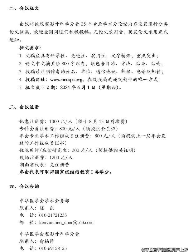 2024中華醫(yī)學(xué)會整形外科學(xué)分會第二十一次學(xué)術(shù)交流會