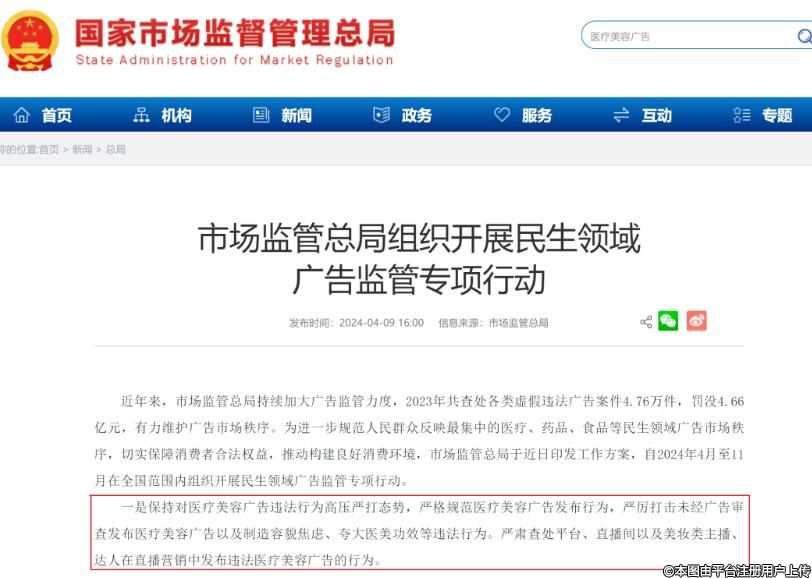 市場(chǎng)監(jiān)管總局:保持對(duì)醫(yī)療美容廣告違法行為高壓嚴(yán)打態(tài)勢(shì)