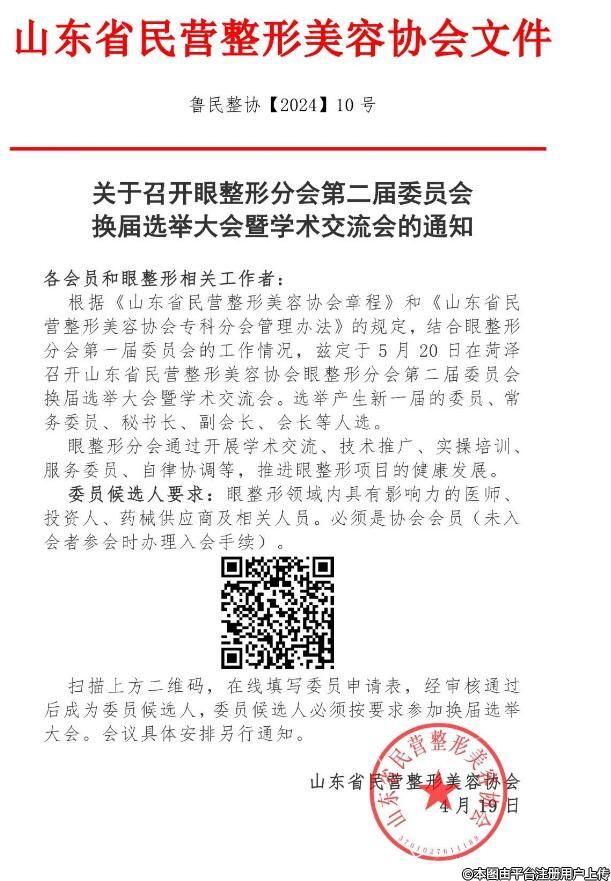眼整形分會通過開展學術交流、技術推廣、實操培訓、服務委員、自律協(xié)調(diào)等,推進眼整形項目的健康發(fā)展。委員候選人要求:眼整形領域內(nèi)具有影響力的醫(yī)師、投資人、藥械供應商及相關人員。必須是協(xié)會會員(未入會者參會時辦理入會手續(xù))。掃描下方二維碼,在線填寫委員申請表,經(jīng)審核通過后成為委員候選人,委員候選人必須按要求參加換屆選舉大會。