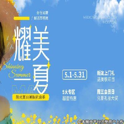 陽光夏日美膚抗衰季,深圳陽光推出美容福利活動啦,新朋友到院見面禮,送人氣美膚項目五選一,每個項目享受一次,五一假日限定卡,價格實惠,讓您美麗整個夏日。