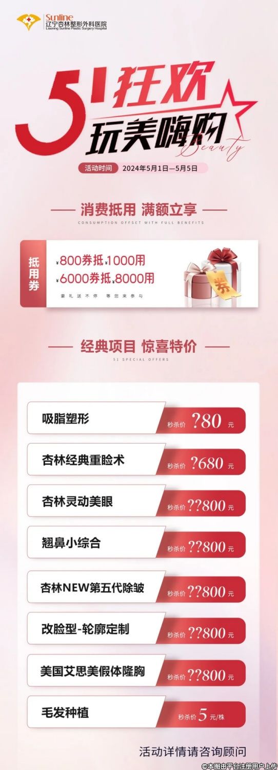 沈陽(yáng)杏林51倒計(jì)時(shí)!限時(shí)優(yōu)惠來(lái)襲,熱門(mén)項(xiàng)目特價(jià)享,還剩一天時(shí)間結(jié)束!